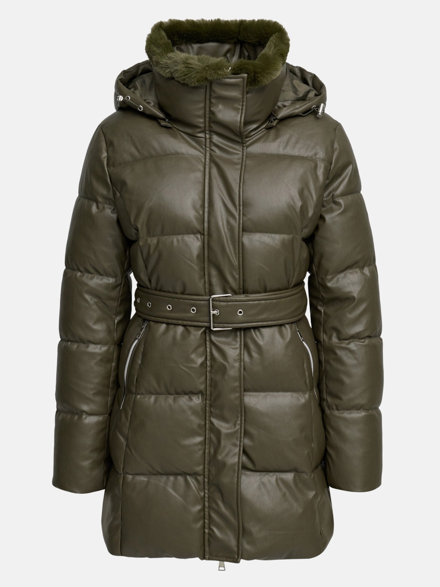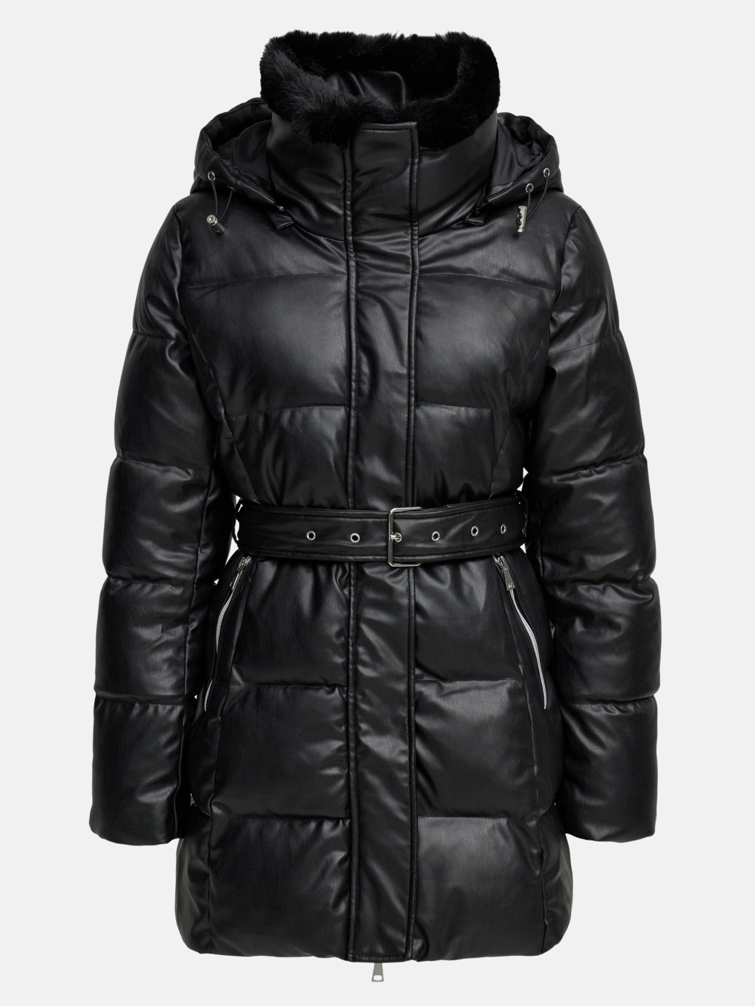 - STYLE-FAKTOR: Gesteppter Lederlook-Mantel mit Fellkapuze - macht ordentlich was her, ohne dass du groß überlegen musst