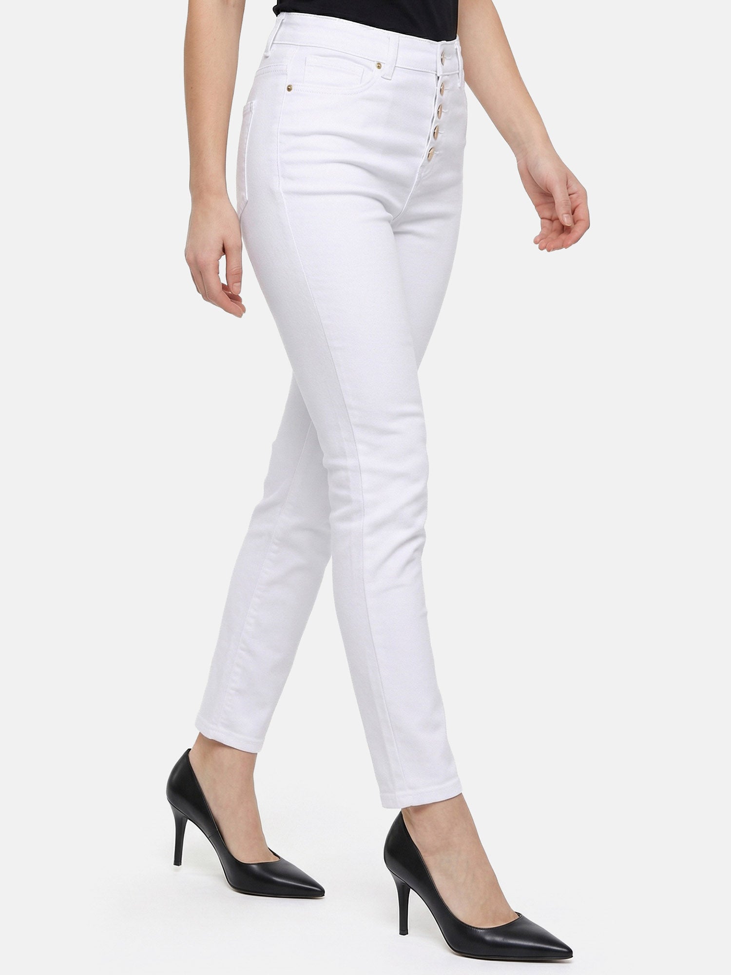 - STYLE-FAKTOR: High Waist Skinny mit goldener Knopfleiste - die sieht aus, als hättest du dir richtig Mühe gegeben